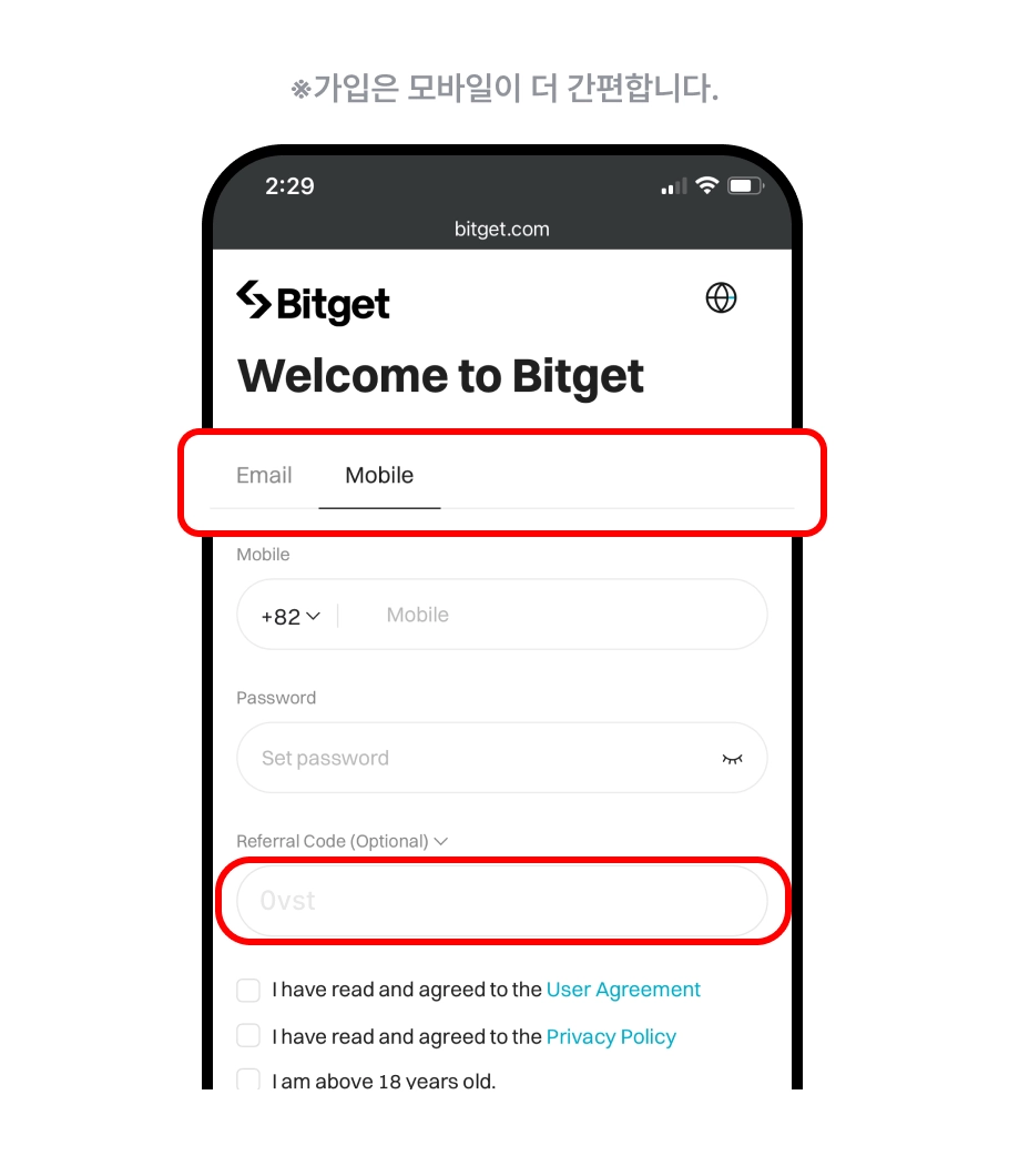 레퍼럴 코드(Referral code)에 반드시 아래 코드를 추가해주세요
