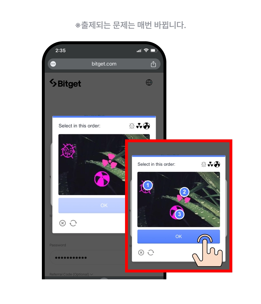 사람인지 확인하는 문제를 풀고 OK를 눌러줍니다.
