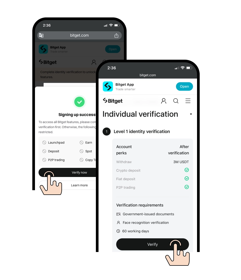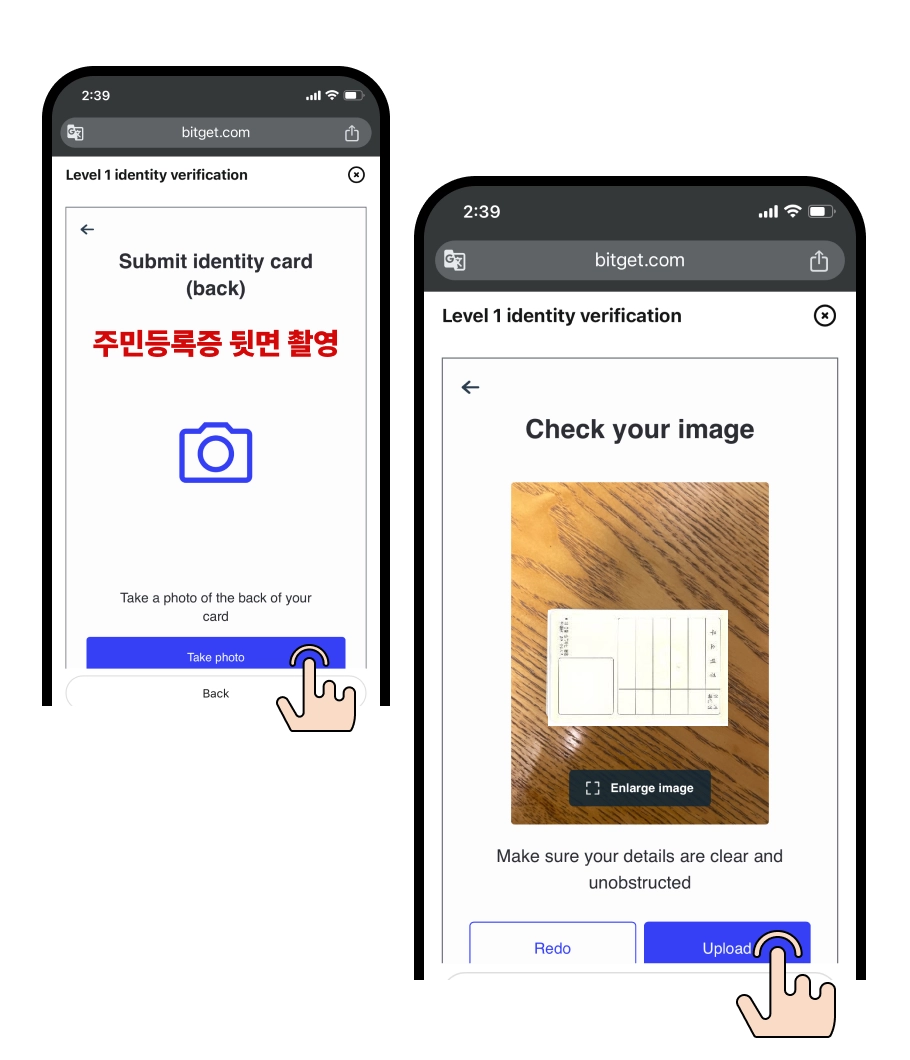 회원가입 완료 화면에서 바로 신원 인증을 진행합니다.