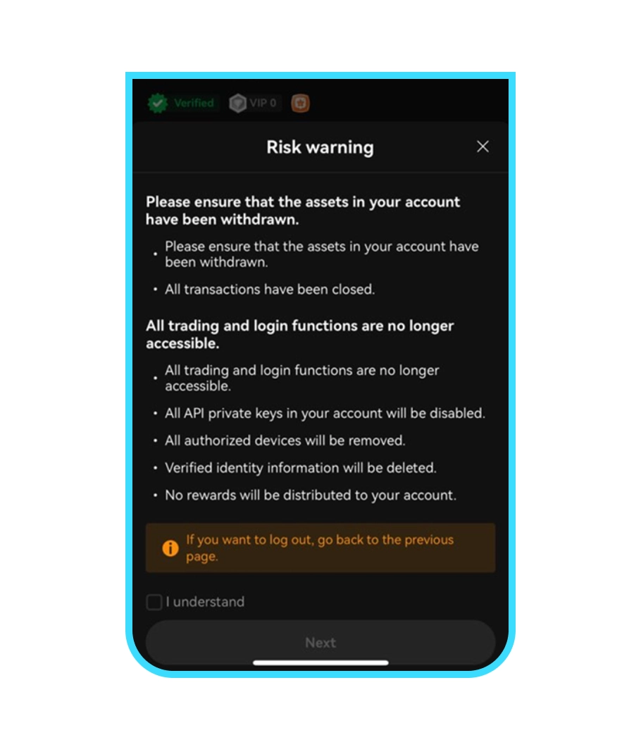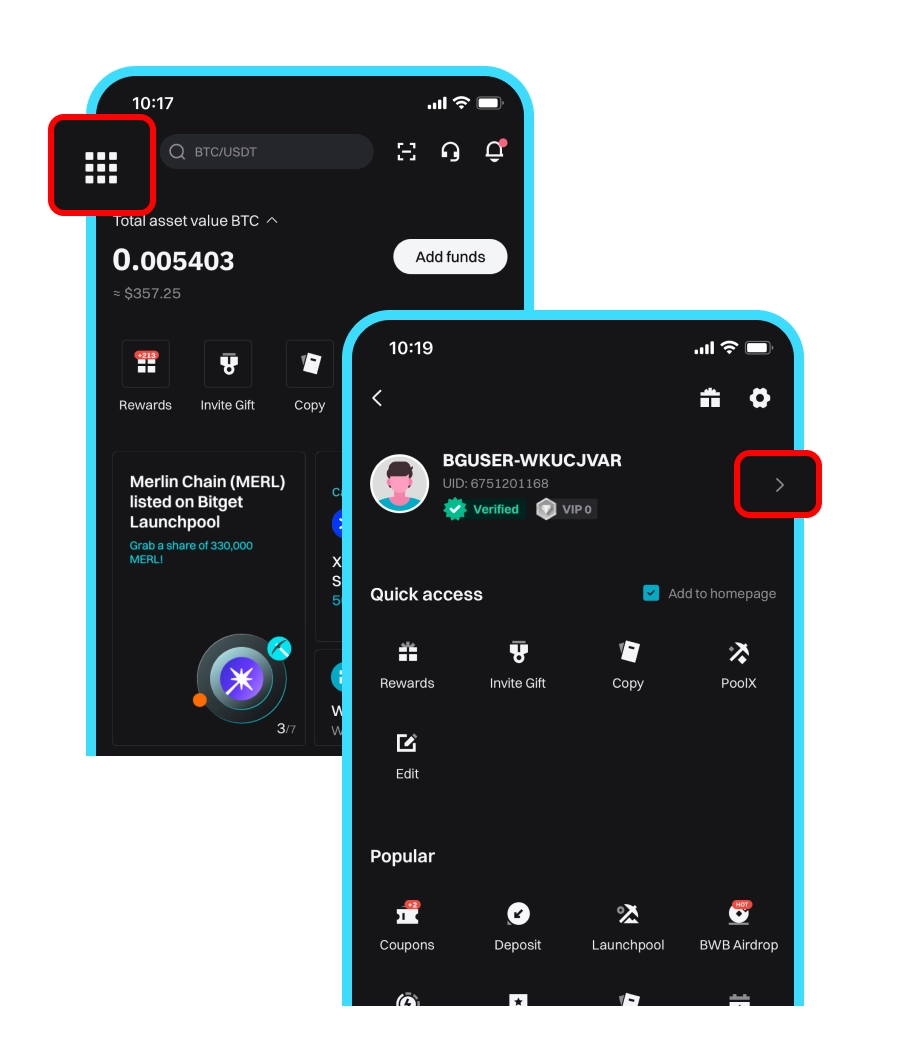 비트겟 앱에서 개인 정보 페이지로 이동합니다.