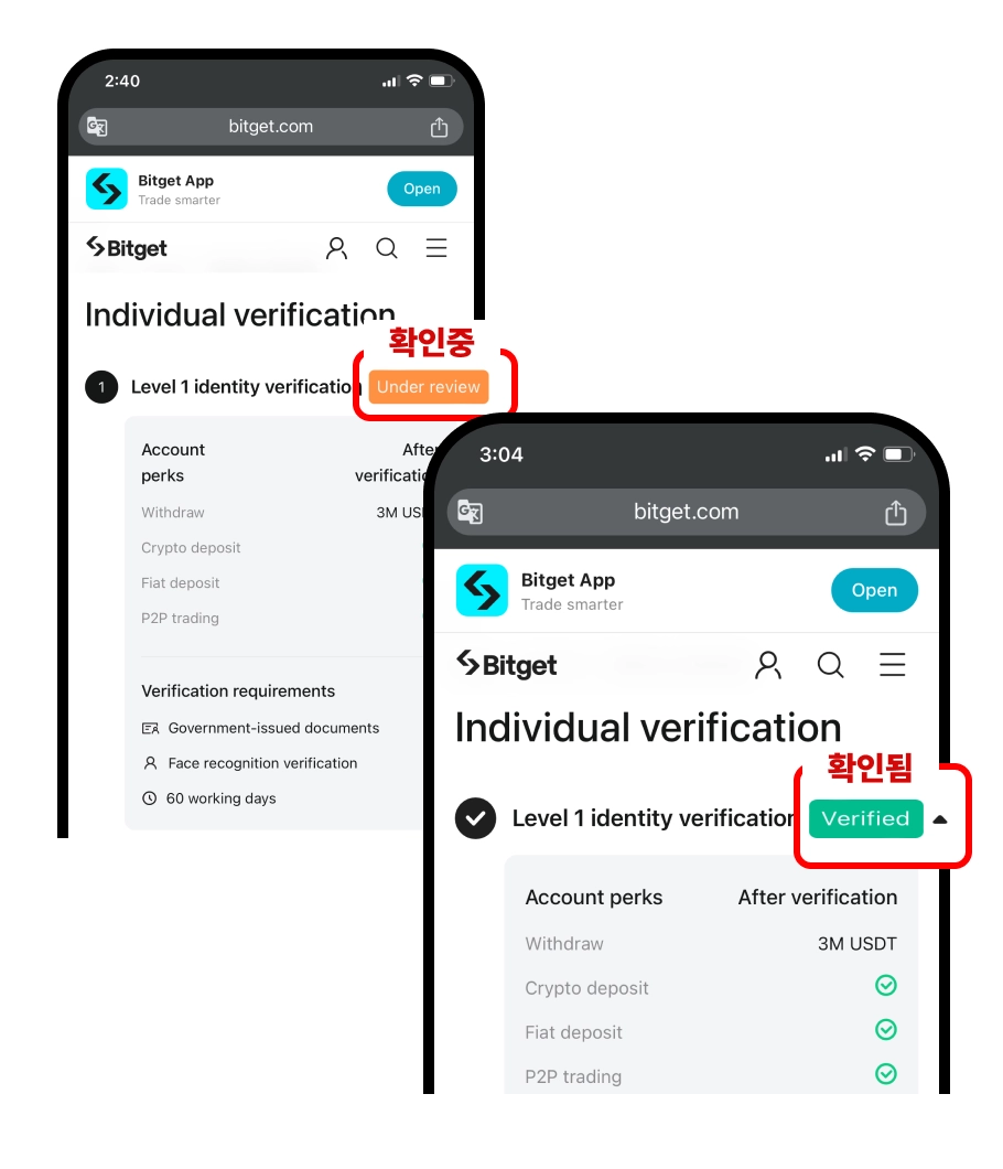 신원 인증이 완료되면 위 이미지와 같이 확인되었다고 상태가 바뀌는 것을 볼 수 있습니다.