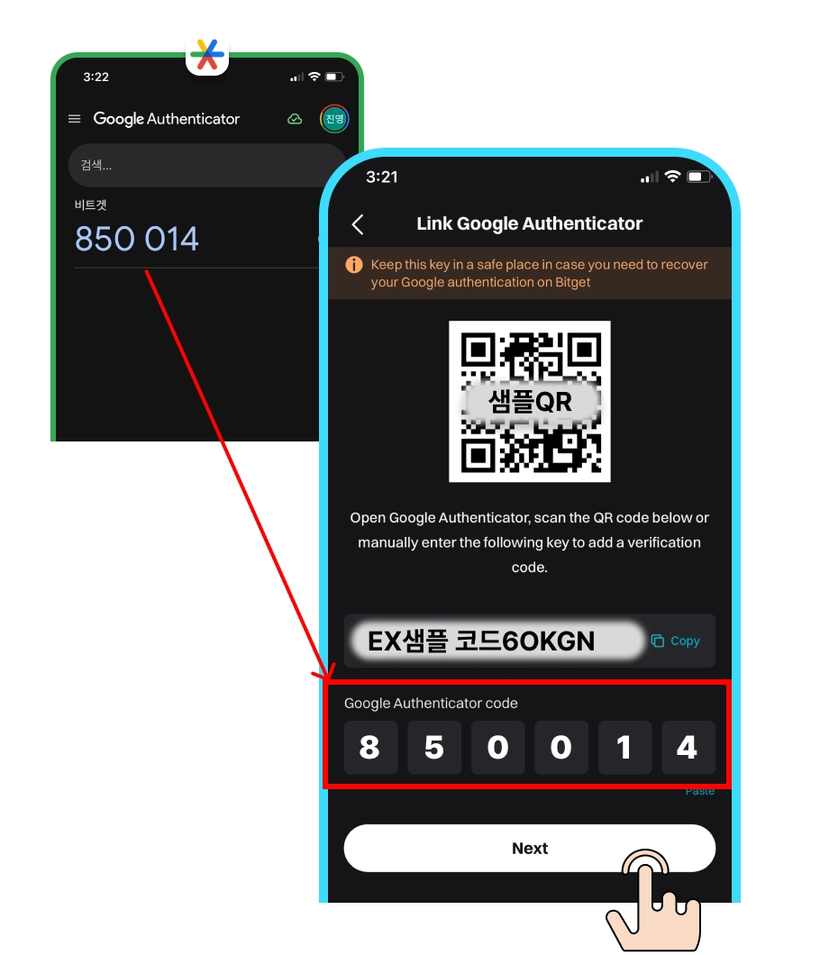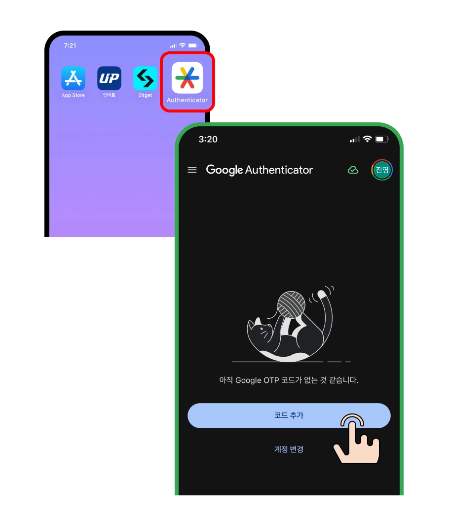 비트겟에서 확인한 코드를 구글 OTP에 입력합니다.