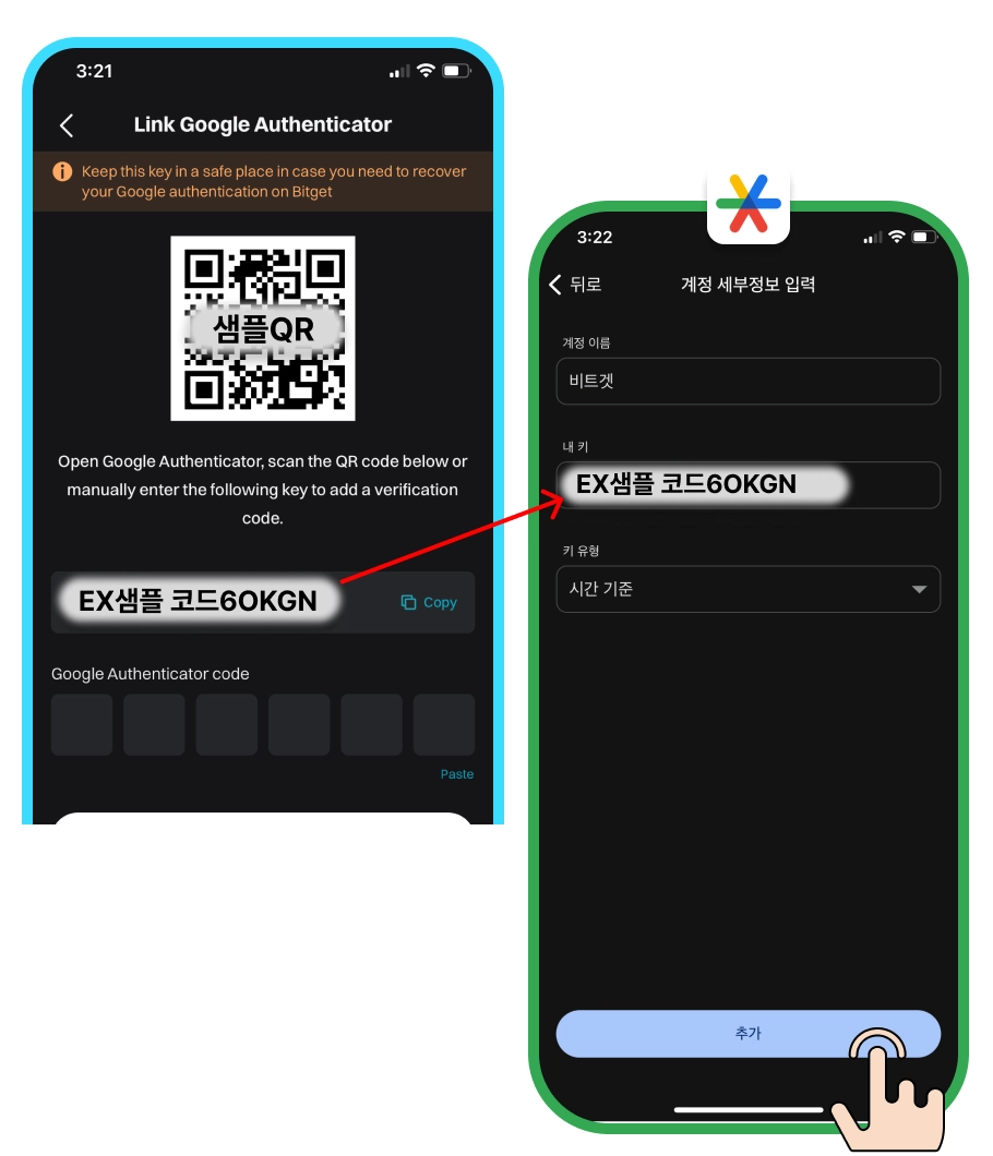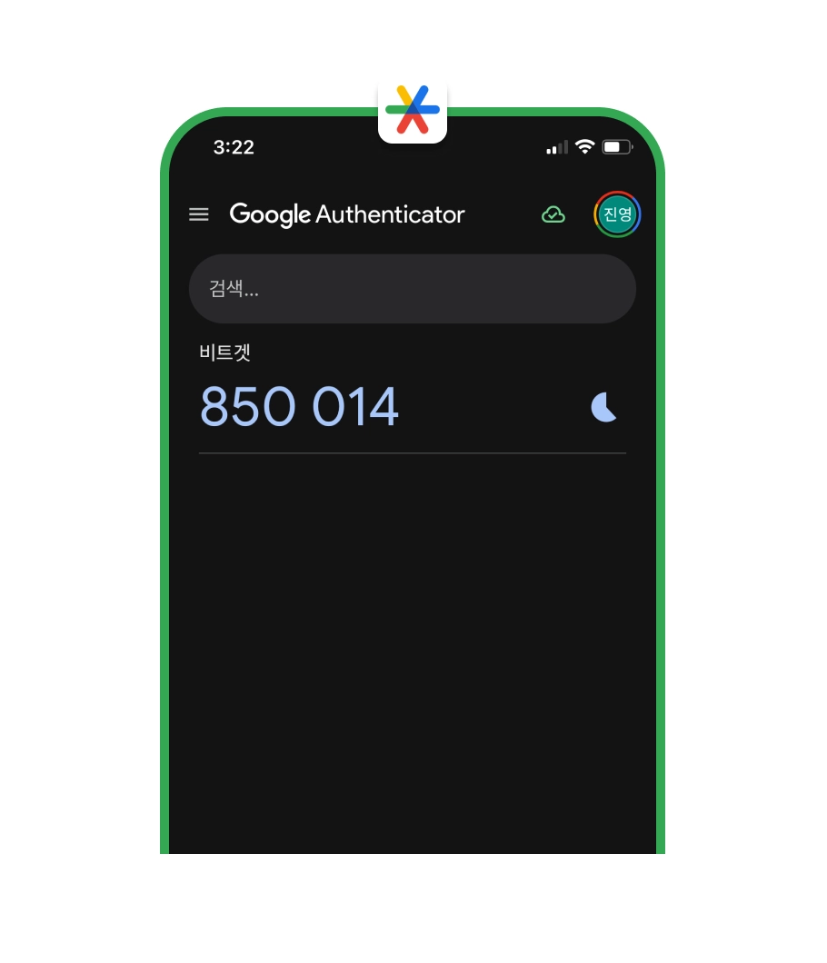 비트겟에서 확인한 코드를 구글 OTP에 입력합니다.