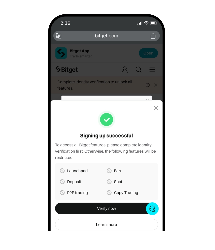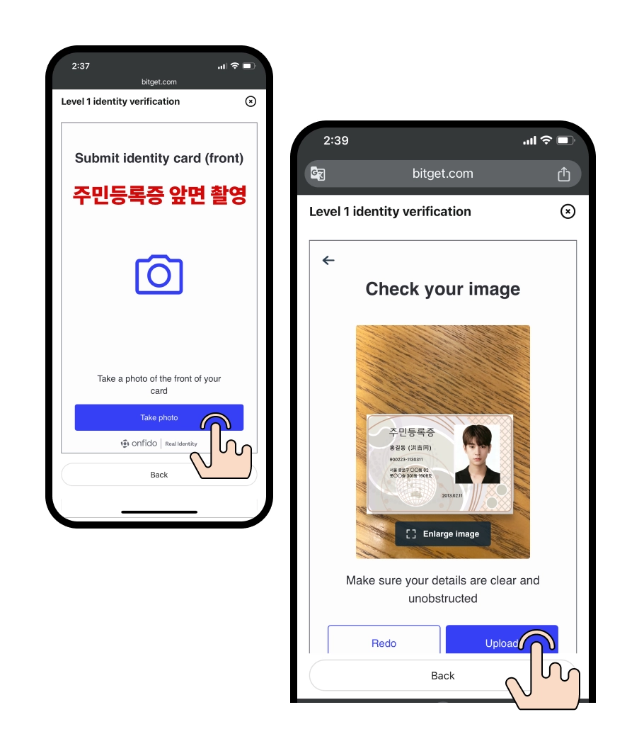 회원가입 완료 화면에서 바로 신원 인증을 진행합니다.
