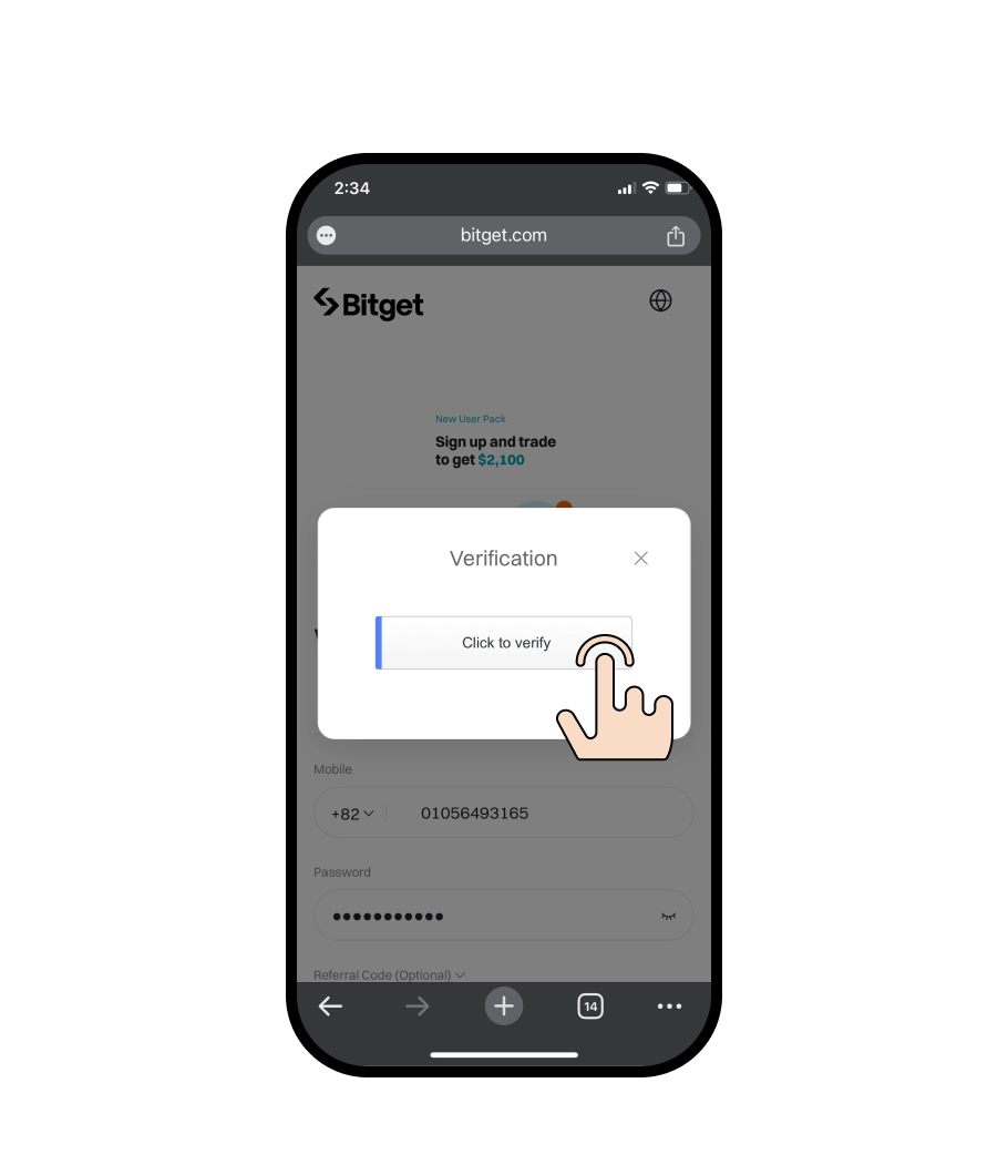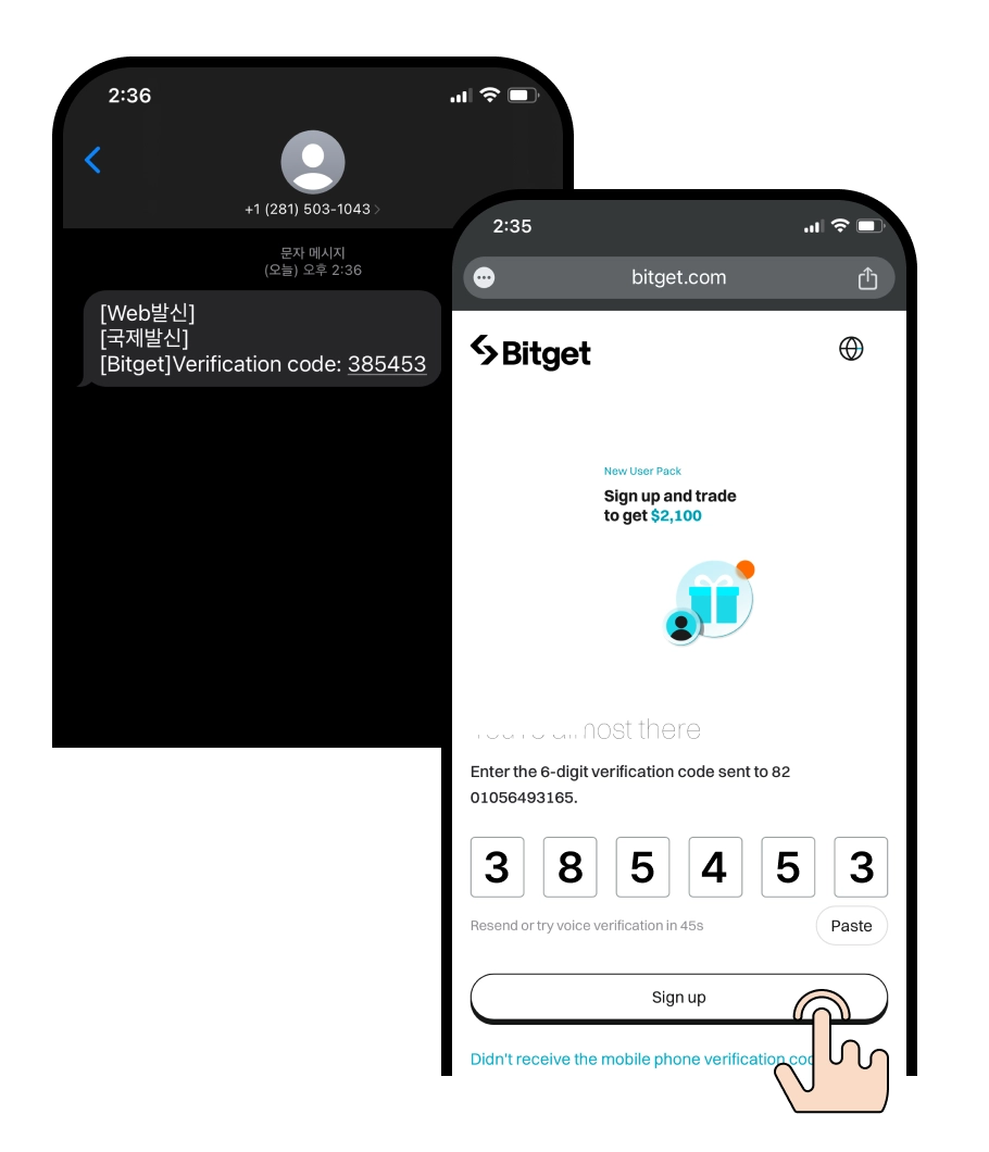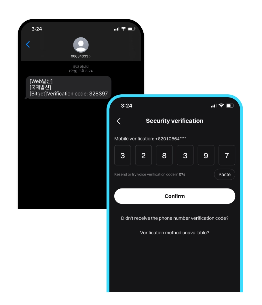 SMS로 송신되는 인증 코드를 비트겟에 입력합니다.