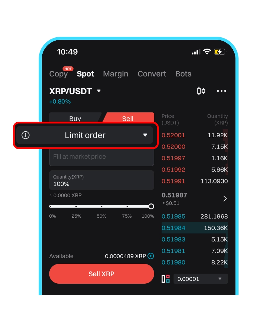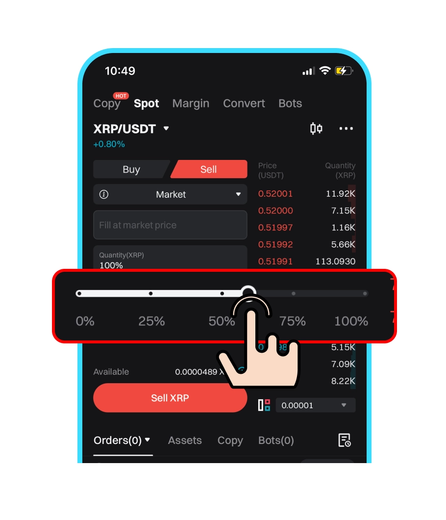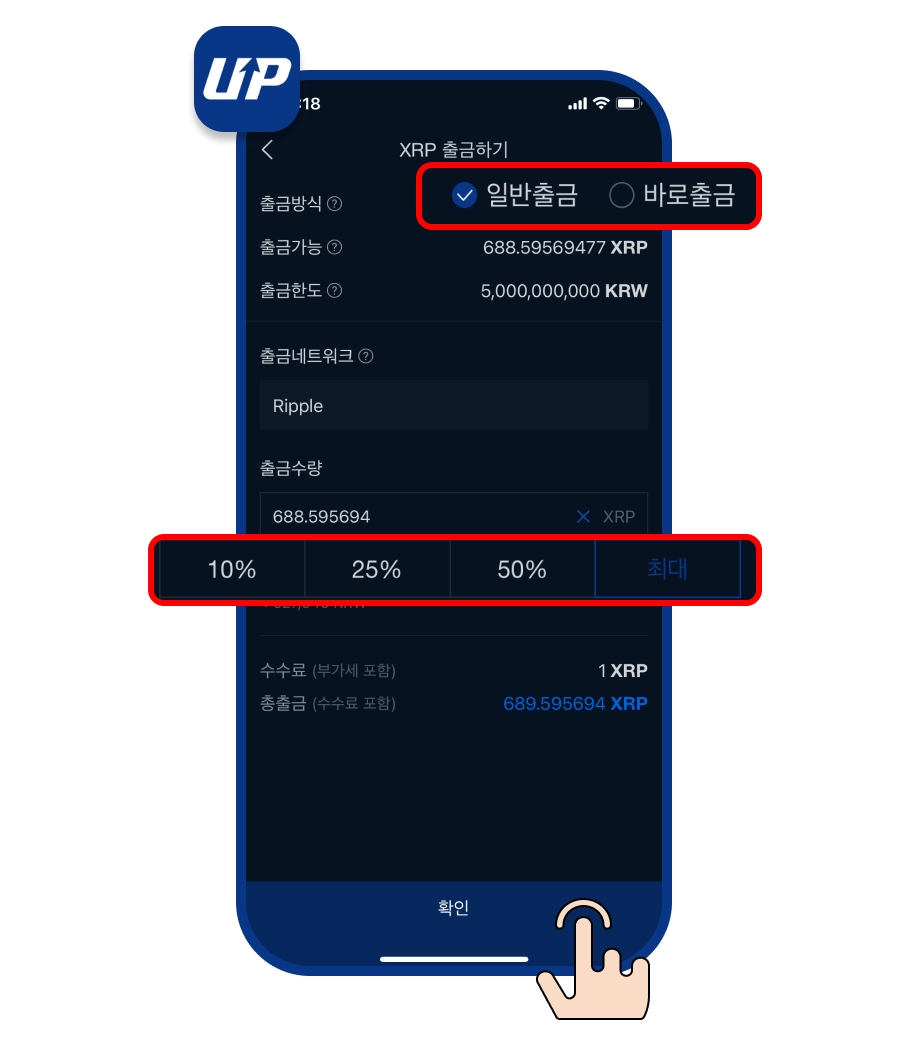 다음으로 판매할 리플의 비율을 선택 할 수 있습니다.