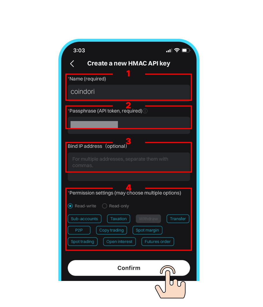 ※api key, Secret key, Passphrase 3개 모두 프로그램 설정에 필요합니다!